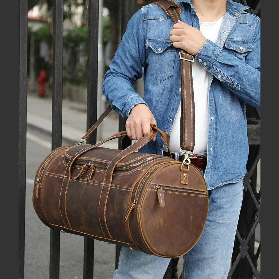 Genuine Leather Men’s Travel Bag Cowhide Shoulder Hand Luggage