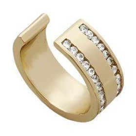 This ear cuff features two rows of rhinestones on shiny gold plating. Sold individually.