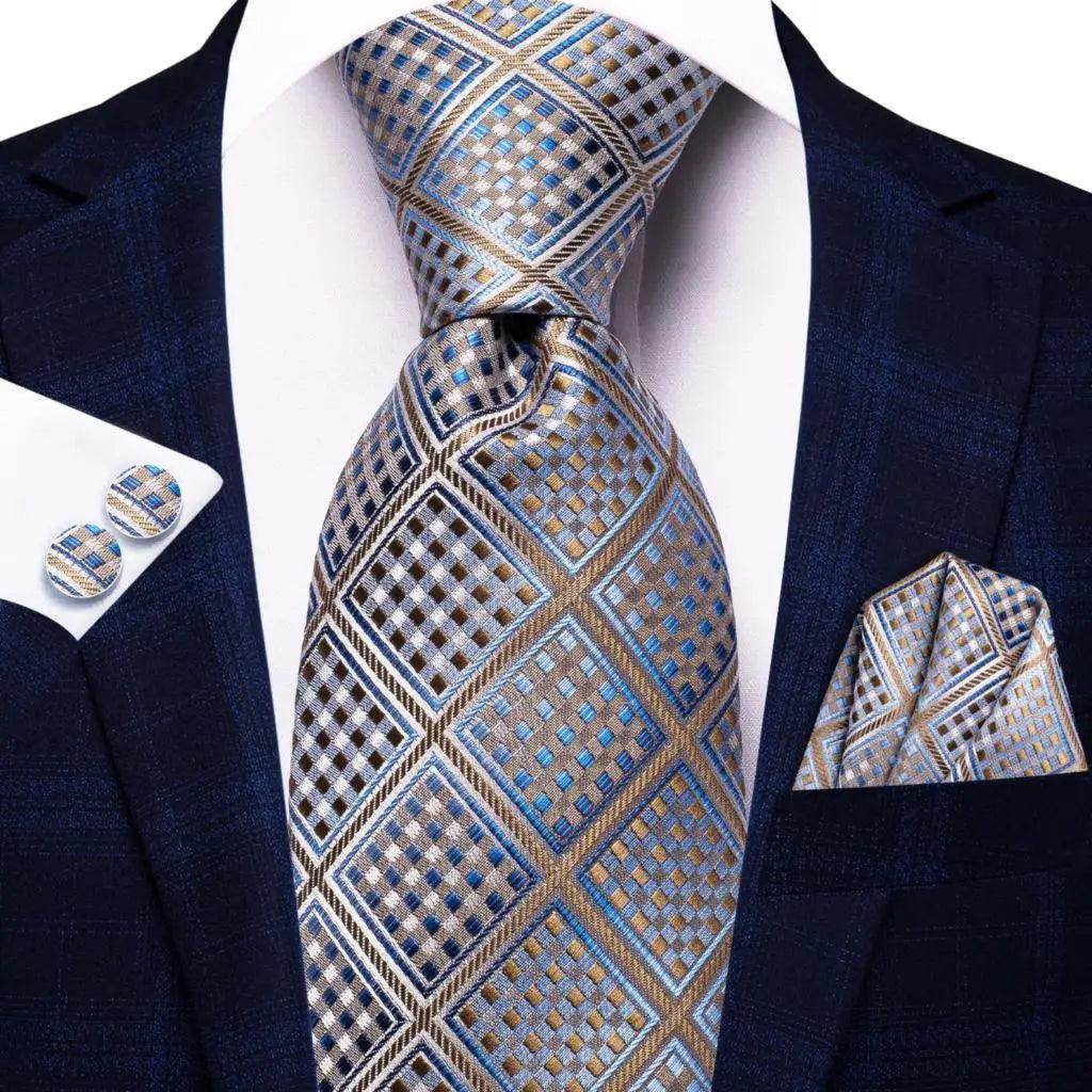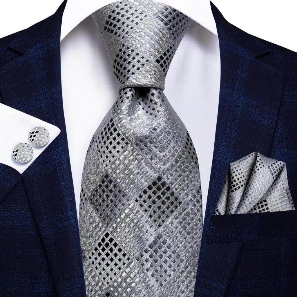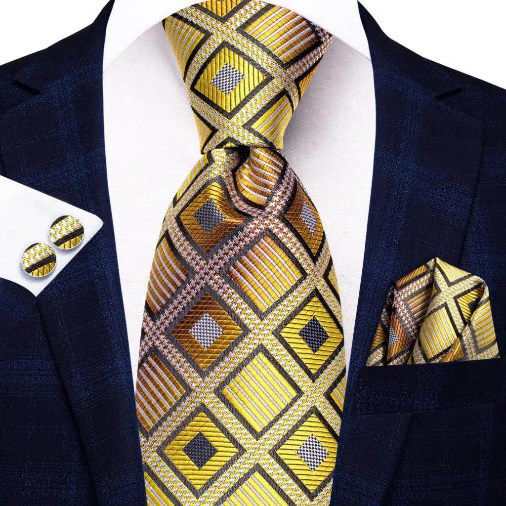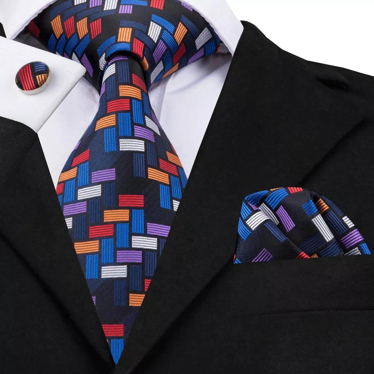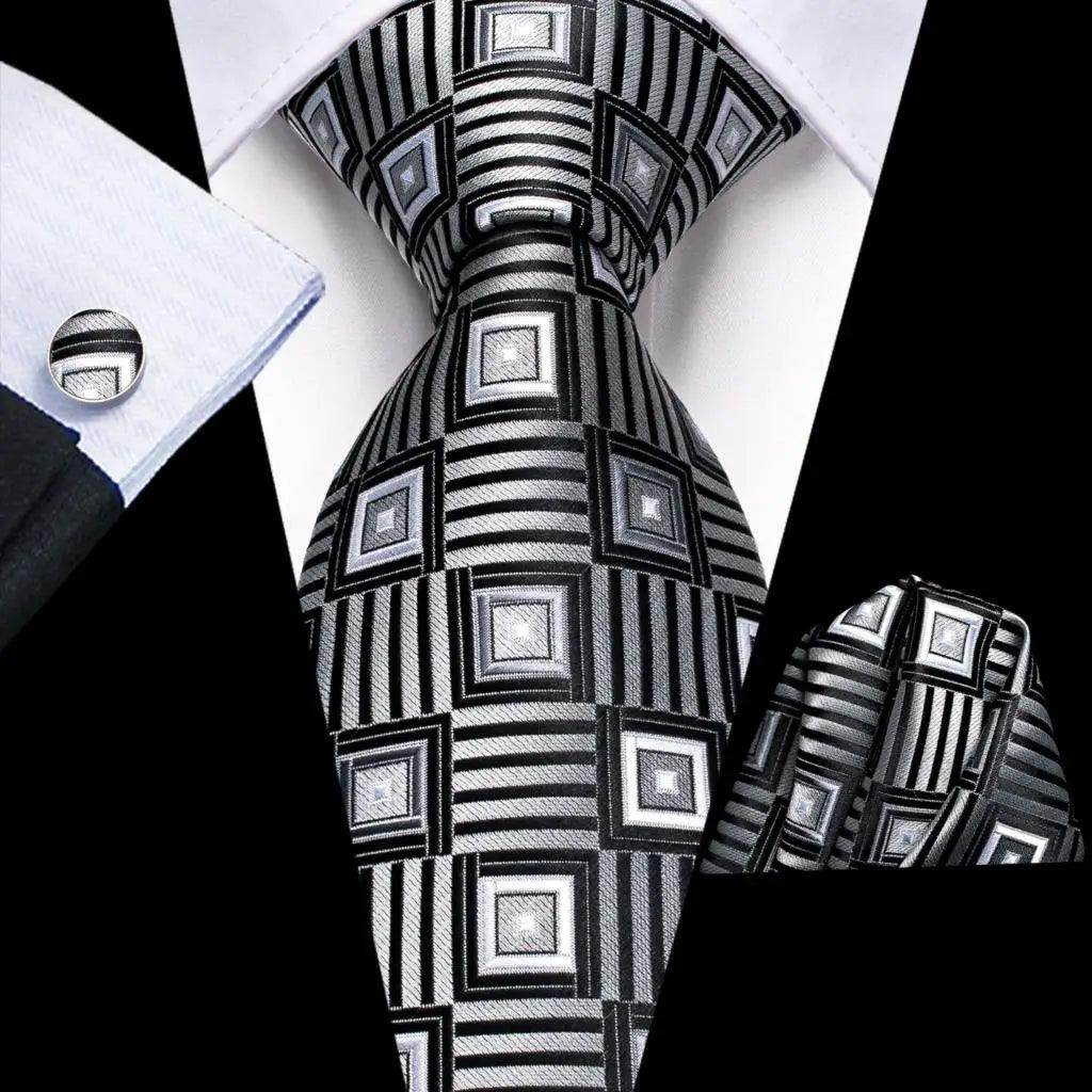 Geometric Pattern Neckties For Men Silk Tie Sets Square Cufflinks