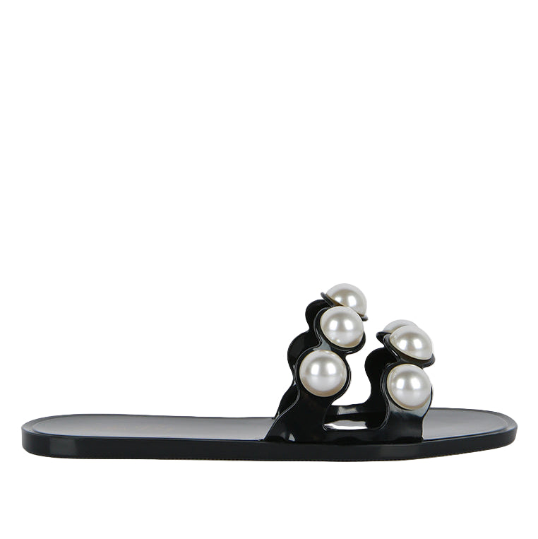 Soft on heels, easy on feet - these jelly flats look gorgeous with oversized faux pearl embellishment on straps. Have grooves outsole which adds to the look. Perfect casual footwear for women on a rainy date!̴Ì?