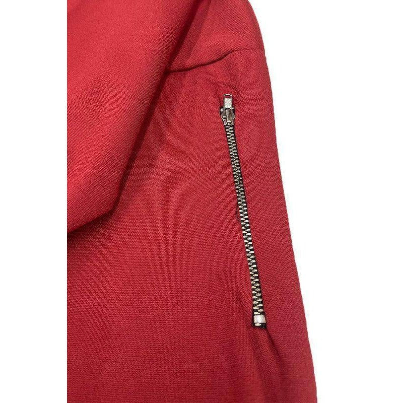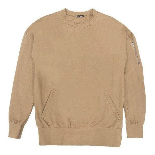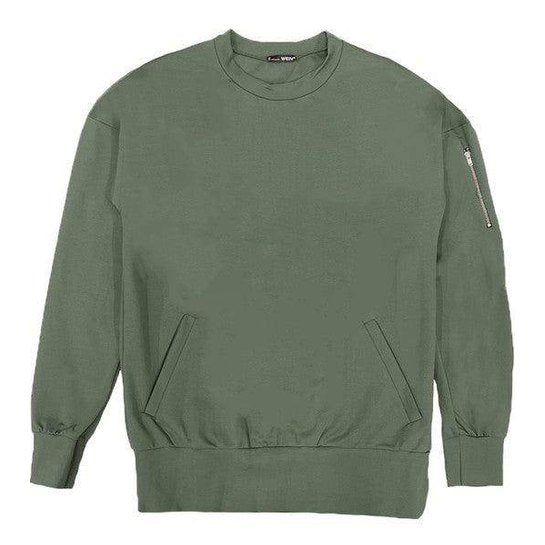 * Featuring Waist Length, Oversized, Long Sleeve, Zippered Trims on Left Sleeve, Ribbed Cuffs, Neckline and Bottom Hem, Solid Color, Stretched and Casual Style