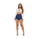 Upgrade your summer look with the Isa High Rise Short in Blue from GJG Denim. These high rise denim shorts women love come with a classic blue wash. The fit sits above the waist, hugging comfortably for a flattering silhouette. The material feels soft and sturdy.