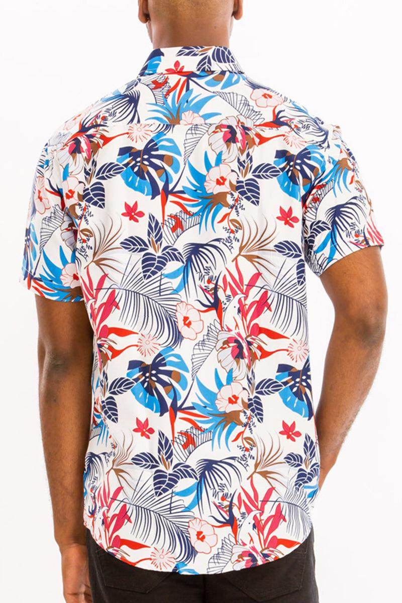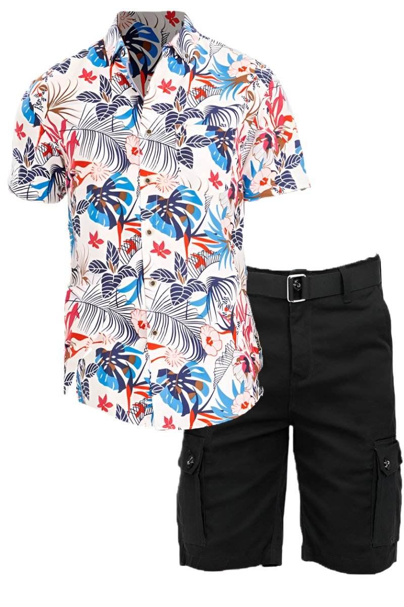Ensemble chemise hawaïenne multicolore blanche et short cargo