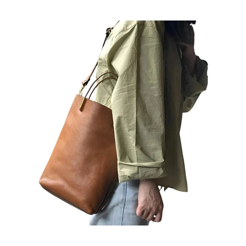 Sac seau Simple en cuir véritable pour femme en cuir souple naturel