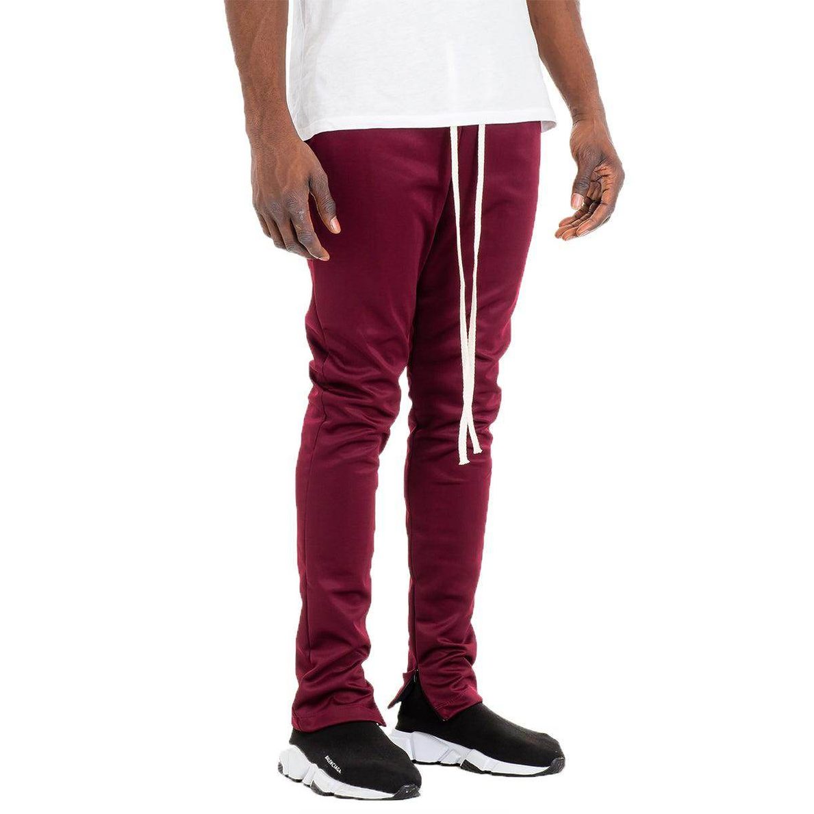 Discover ultimate comfort and flair with our Mens Burgundy Slim Fit Drawstring Track Pants. Perfect for the trendsetter seeking vacation style track pants that combine functionality with modern aesthetics.