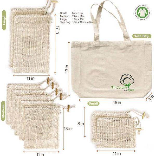Reusable Organic Cotton Tote Mesh Bag w/6 Sleeves.