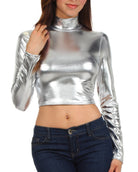 Features a high quality metallic stretch fabric, mock neck turtleneck, long sleeves, slim fit and a variety of colors to choose from. Crop top turns heads and adds an edgy sexy flair to your wardrobe.