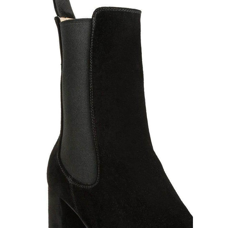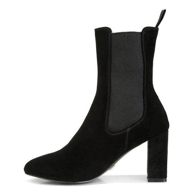 Discover the epitome of chic with these high ankle suede Chelsea boots! Their comfortable cushioned insoles make them an effortless pair to wear and style. Their versatility allows maximum wearability and makes them a staple in every shoe wardrobe.