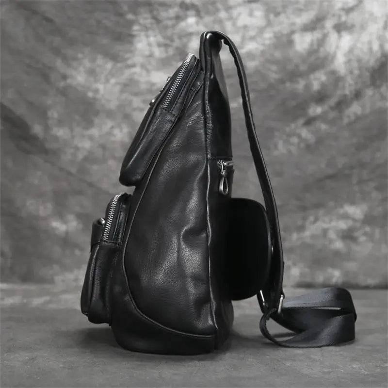 Genuine Leather Men Chest Bag Single Shoulder Sports Riding Bag