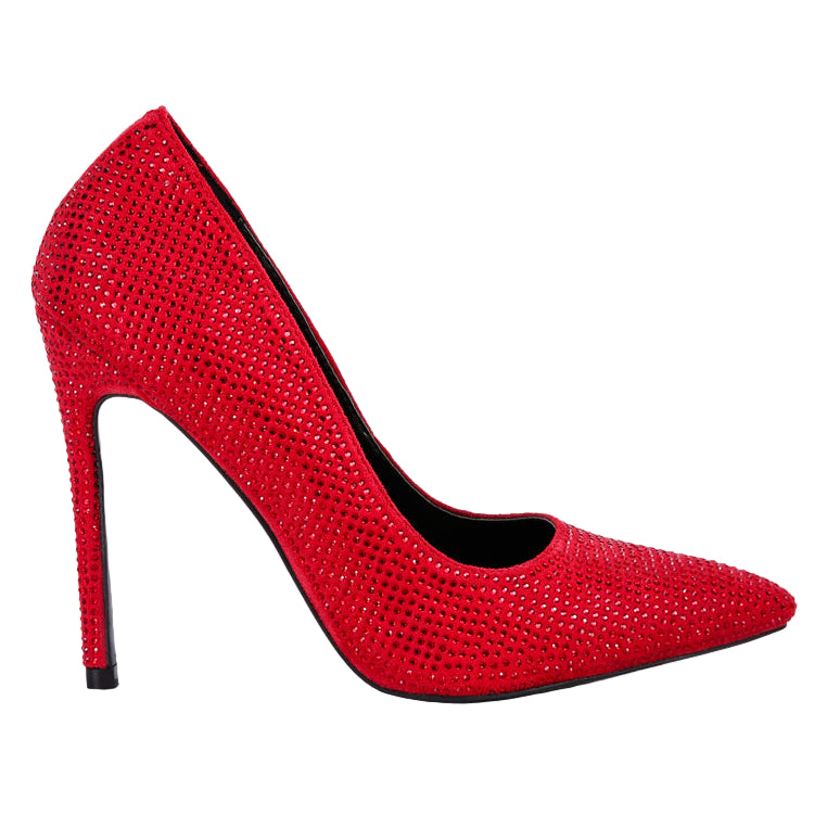 Beautified with sparkling diamante detailing, these high heels are not just shoes but a statement piece. These pumps are the perfect addition to your evening dress but wait. We didn't stop at dazzling aesthetics; we care about your comfort, too, thus the light cushioned insole!
