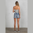 Mid-rise distressed shorts work well with many outfits. Pair them with a tank or crop top for a relaxed vibe. Match them with a breezy blouse for a day out. The vintage wash adds character. These shorts feature classic five-pocket styling, so there is space for your small essentials. Each piece is crafted from premium denim. The fabric is soft yet durable. You can enjoy these shorts season after season.