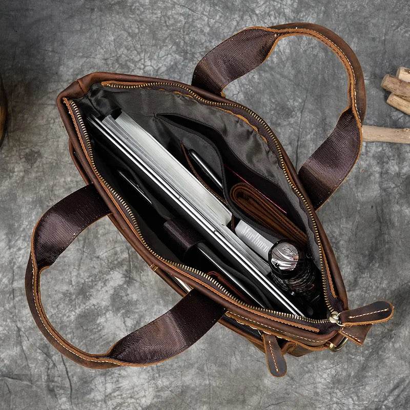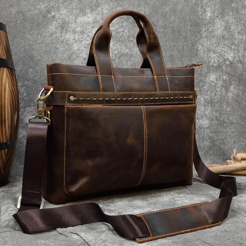 High Fashion Crazy Horse Leather Men's Laptop Handbag