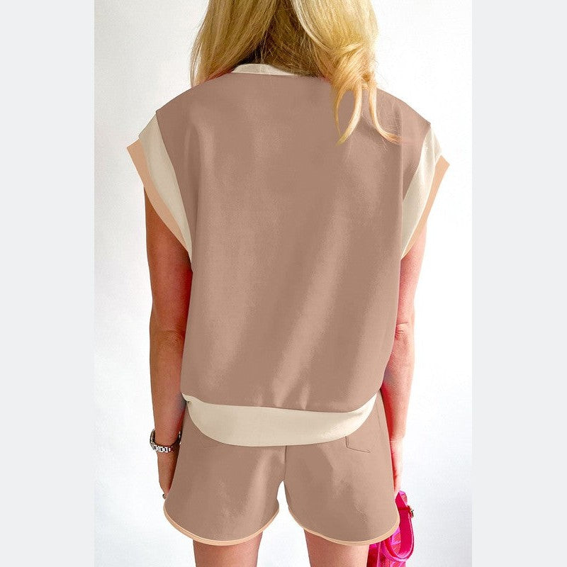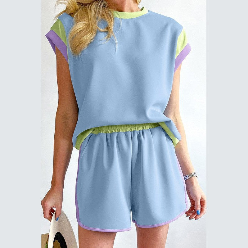 Choose the Women Contrast Trim Cap Sleeve Tee Shorts Set for your next adventure. Feel confident and stylish for every plan on your vacation schedule. This summer vacation two piece outfit blends leisure and style so you look ready for anything.
