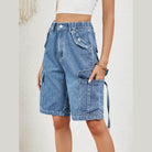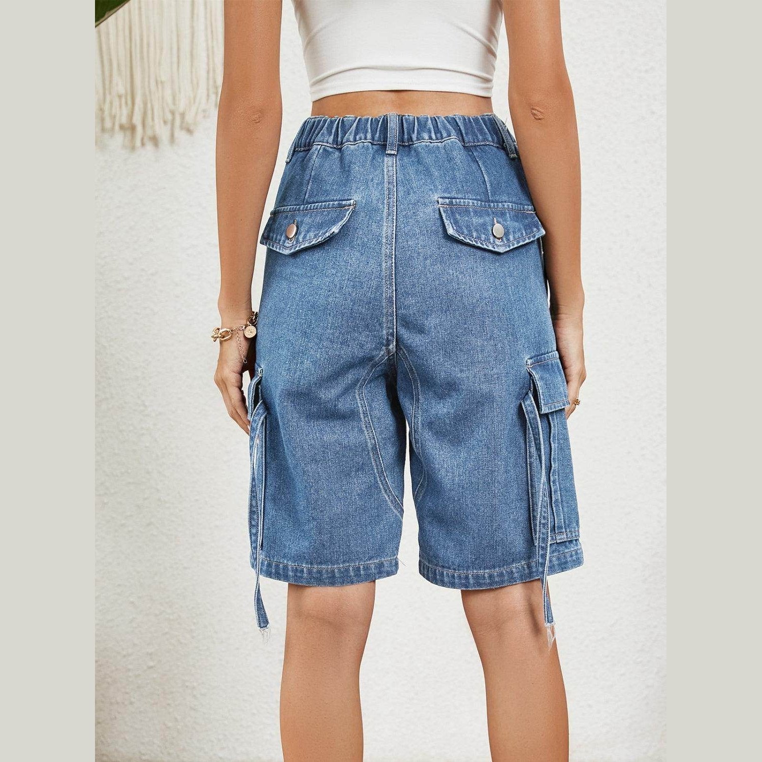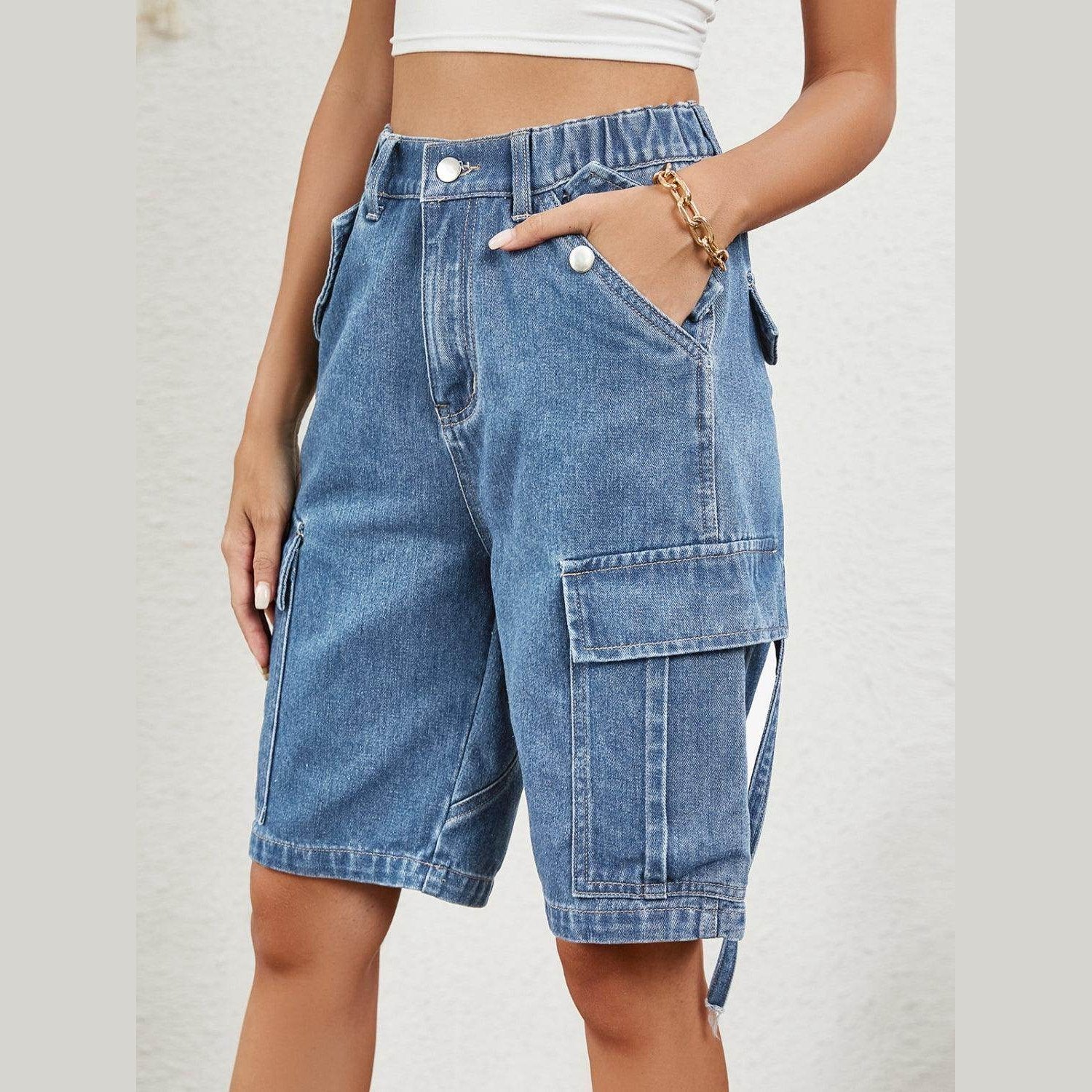 Learn more about our Buttoned Elastic Waist Denim Shorts with Pockets at VacationGrabs: