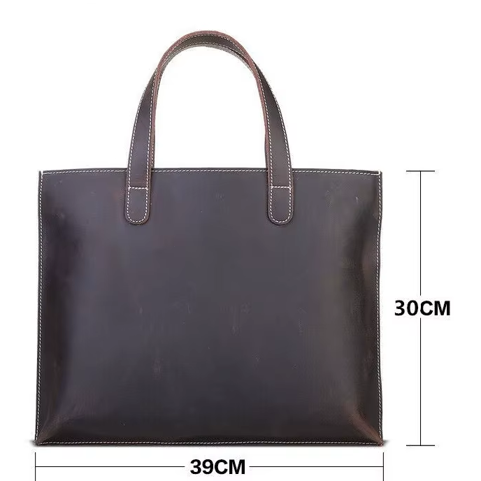 Large Leather Tote Shoulder Bag for Men Women A4