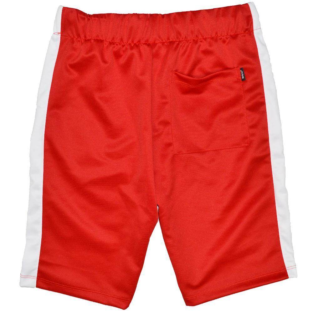 The vibrant red color, combined with the striking white stripe, makes these shorts an eye-catching addition to any wardrobe. Whether you're lounging by the pool or exploring a new city, these shorts provide the perfect balance of casual style and sporty appeal. The adjustable waistband offers a customized fit, ensuring maximum comfort no matter where your adventures take you.