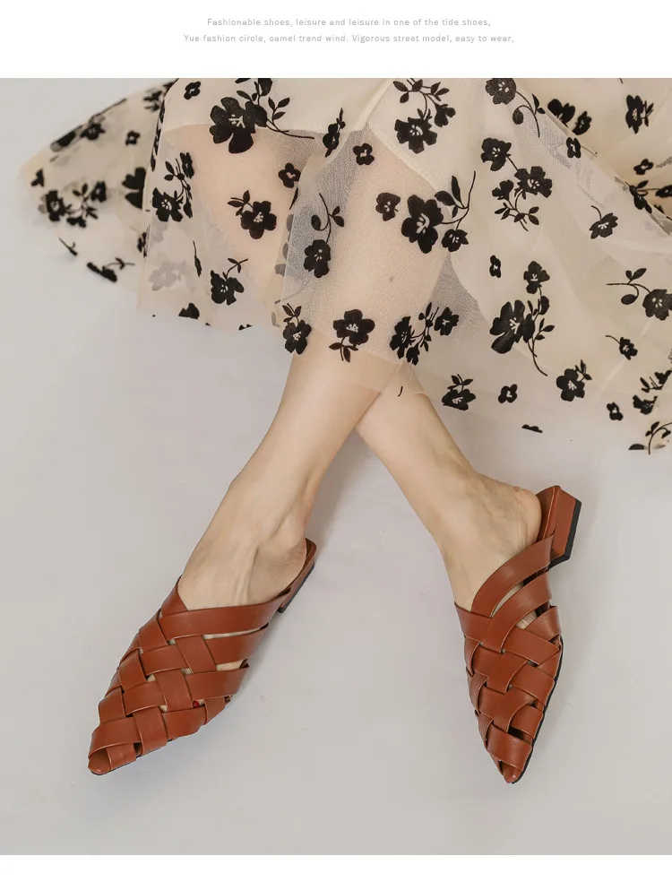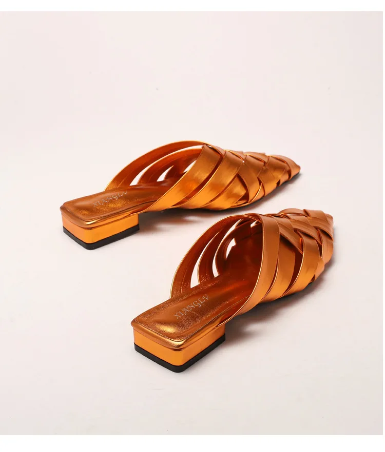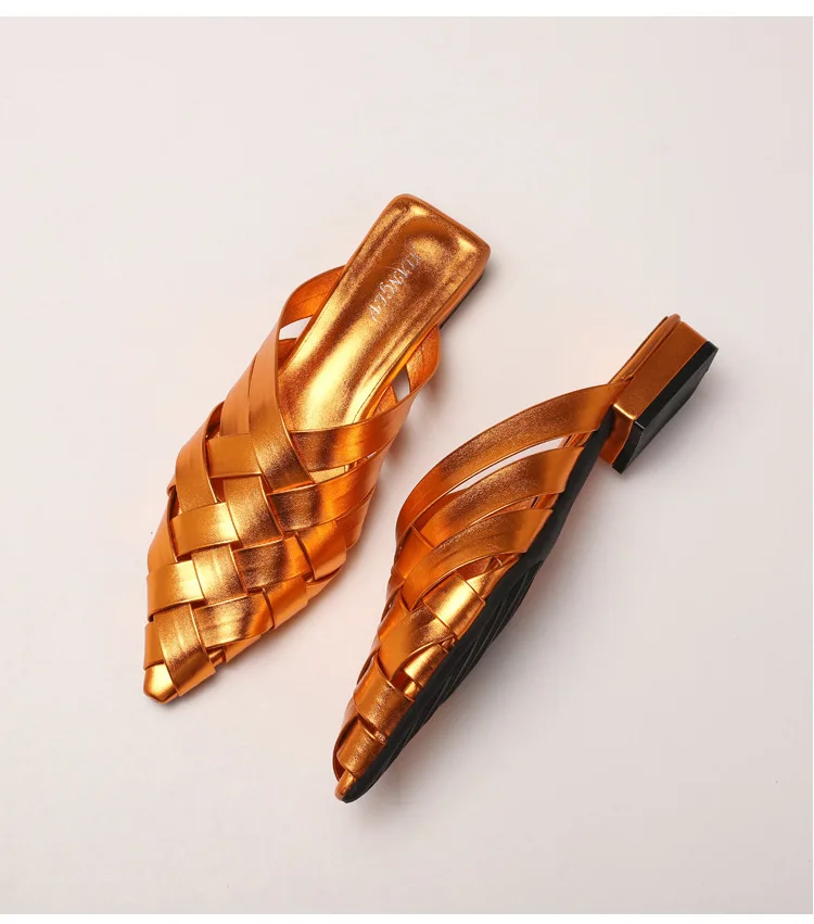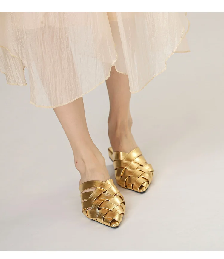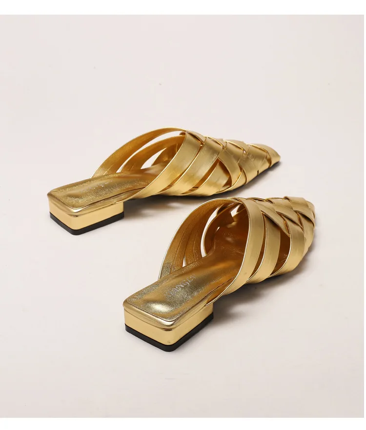 Weave Slippers Low Heels Sandals: Designer Slippers Slides Women