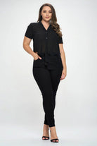 • Chic and Comfortable: Our Black Plus Solid Chiffon Button Down Tie Front Short Sleeve Top is designed to offer both style and comfort.