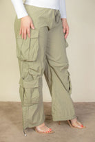 Plus Size Flap Pockets Drawstring Ruched Parachute Pants