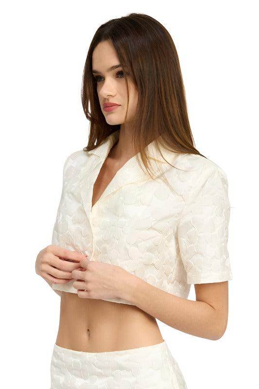 Learn more about our White Collared Cropped Shirt Top at VacationGrabs: