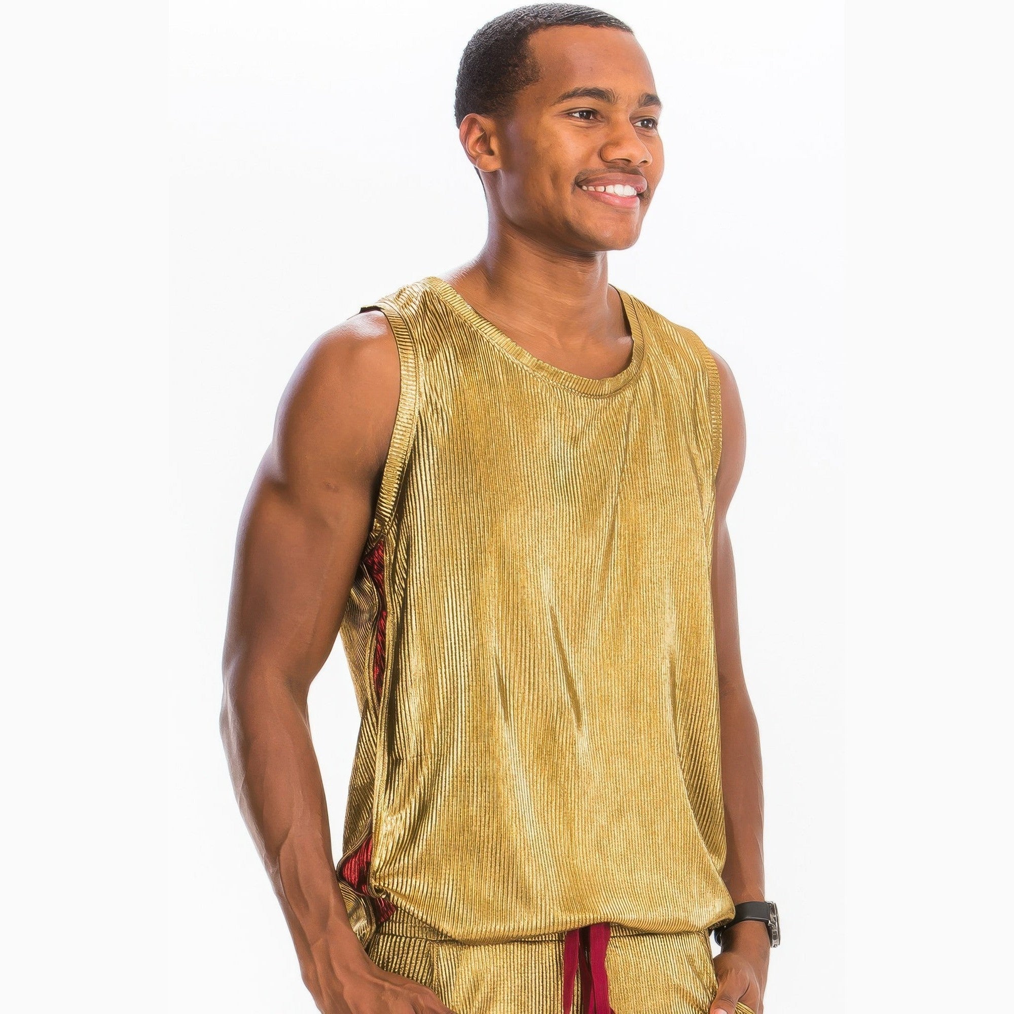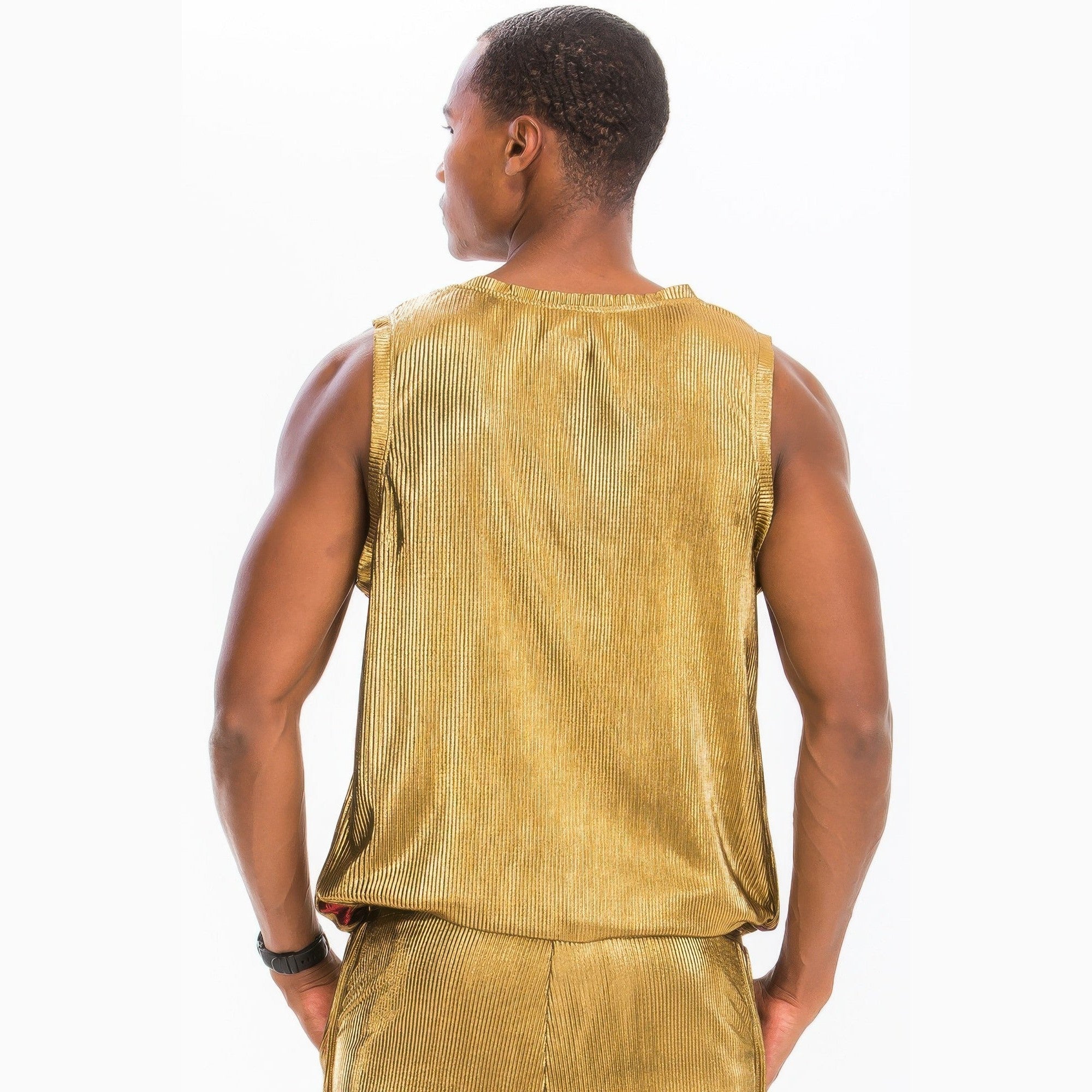 Stand out this season with the summer metallic tank top from VacationGrabs. This shirt offers a gold metallic finish that shines in any light. The smooth fabric feels light against your skin. It lets you enjoy all your summer activities in comfort and style.