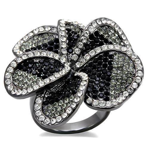 VacationGrabs Black Brass Floral Ring with Sparkling Stones