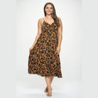 Elevate your plus-size fashion with our Brown/Black Plus Botanical Print Front Tie Maxi Dress, available in sizes 1XL, 2XL, and 3XL. Crafted from 100% rayon, this dress features a captivating botanical print, a front tie detail, and a flowing maxi silhouette for a chic and effortless look.