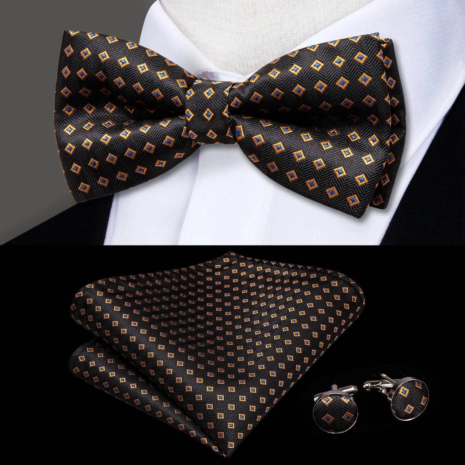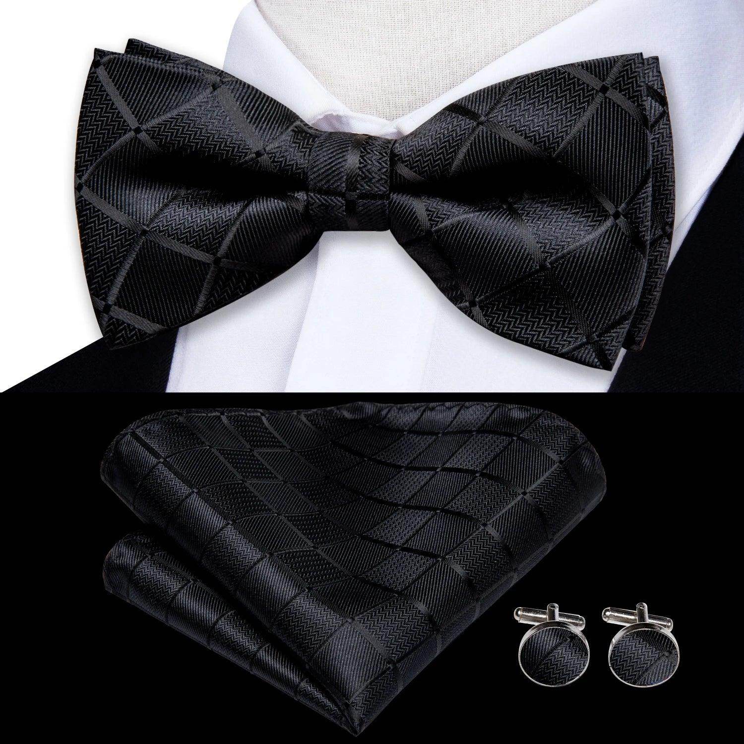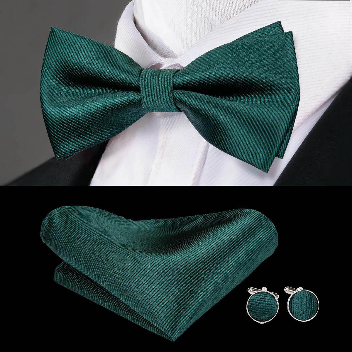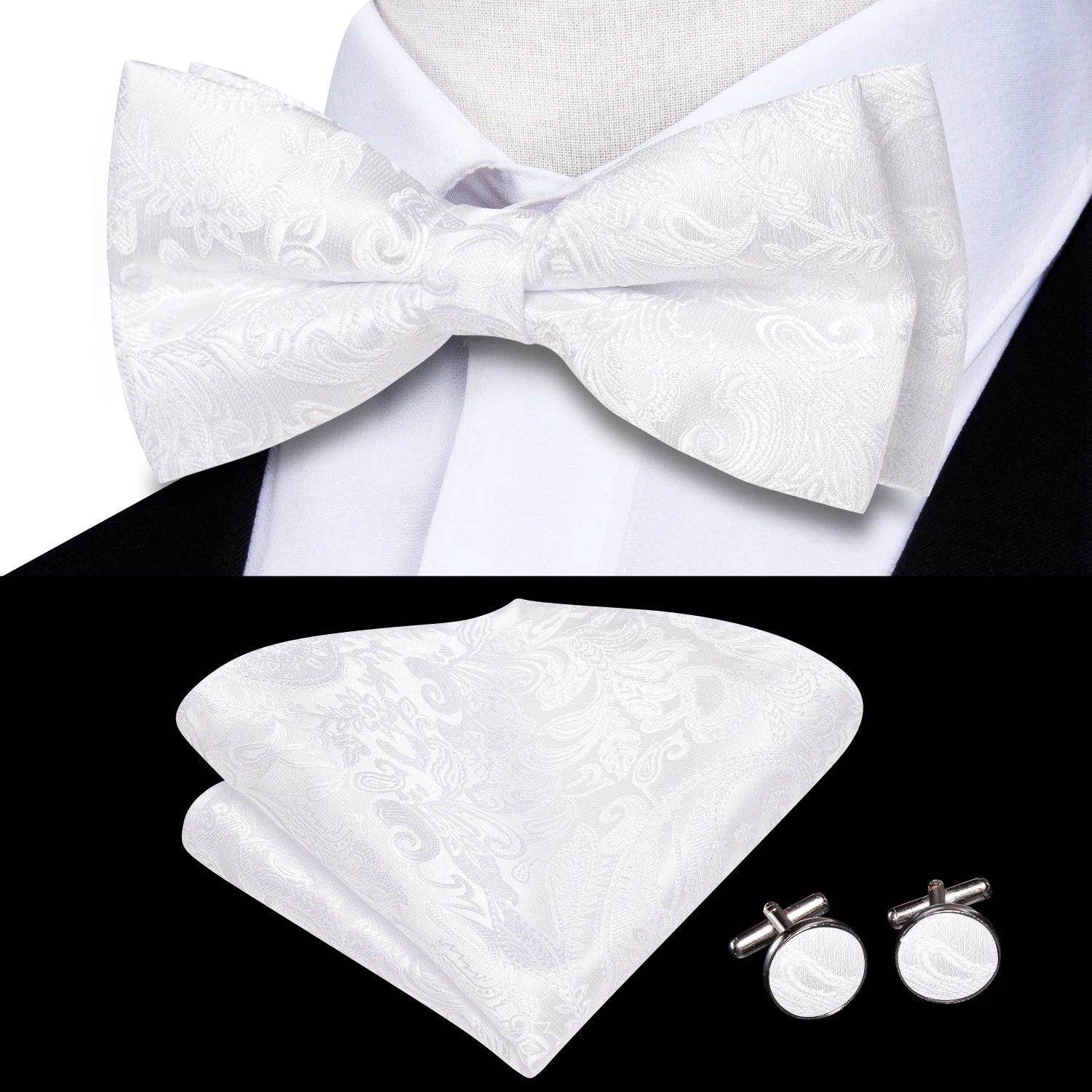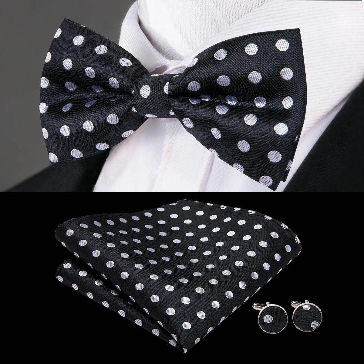 Classic Bow Ties For Men Silk Butterfly Pre-Tied Bowtie Pocket Square Cufflink Sets