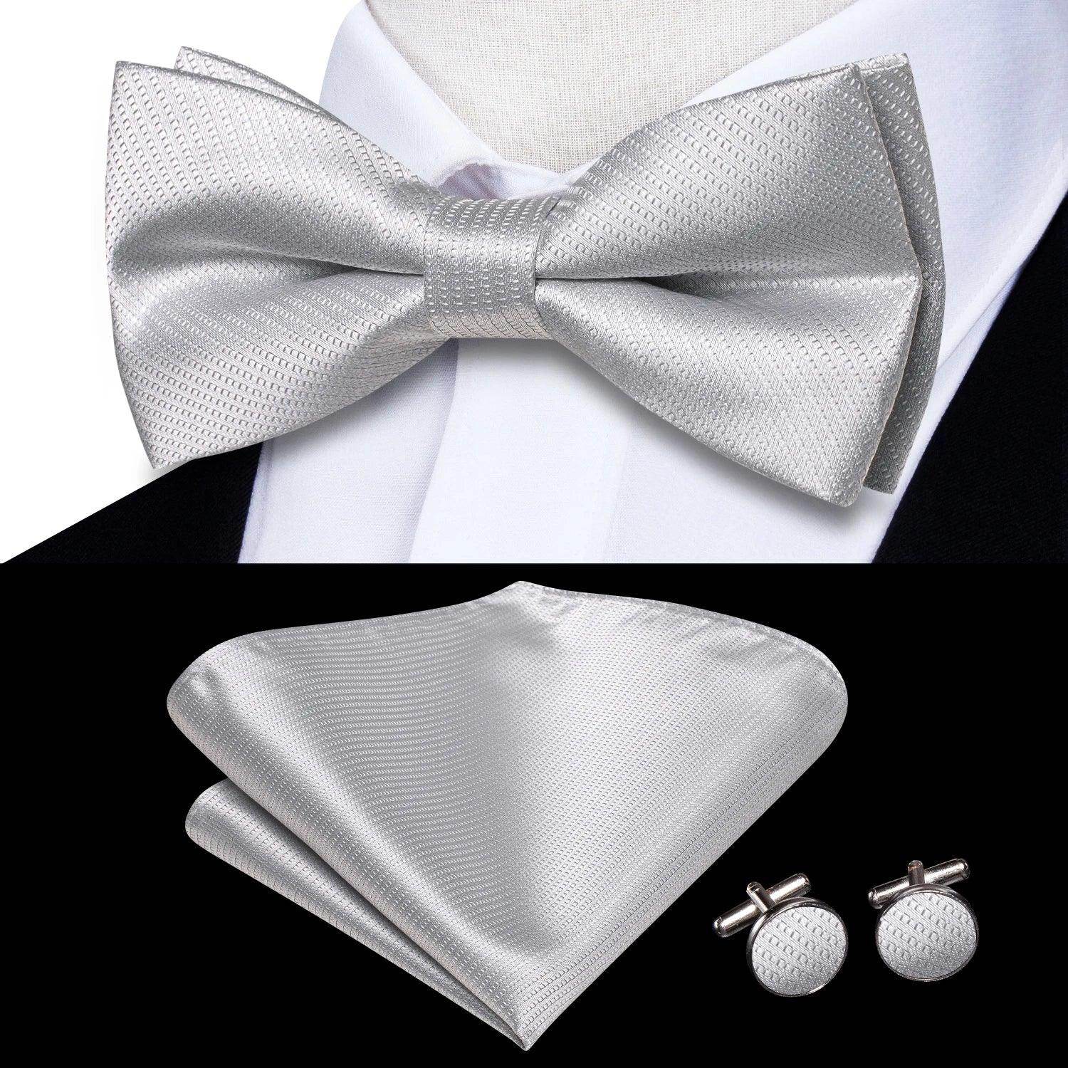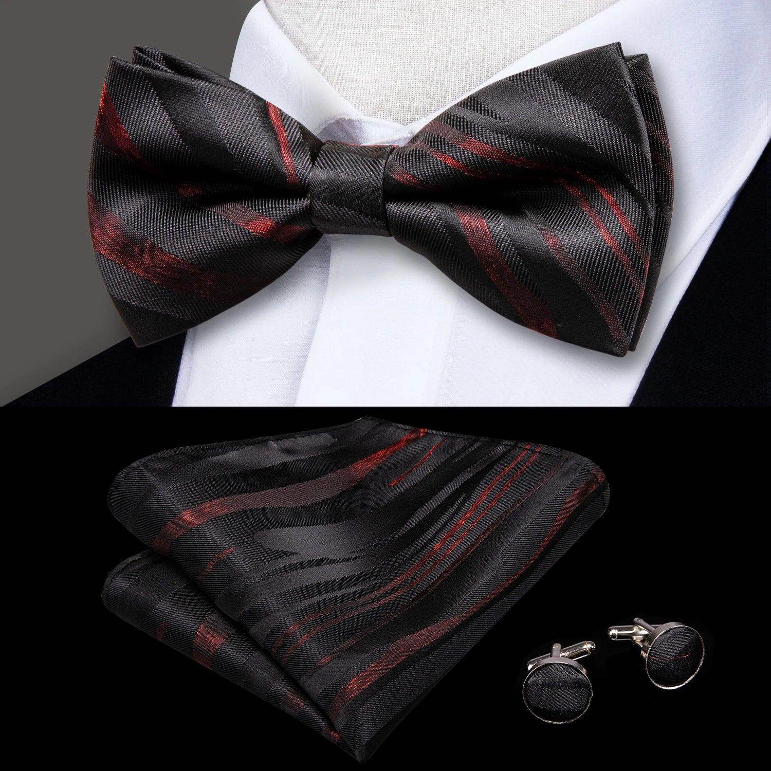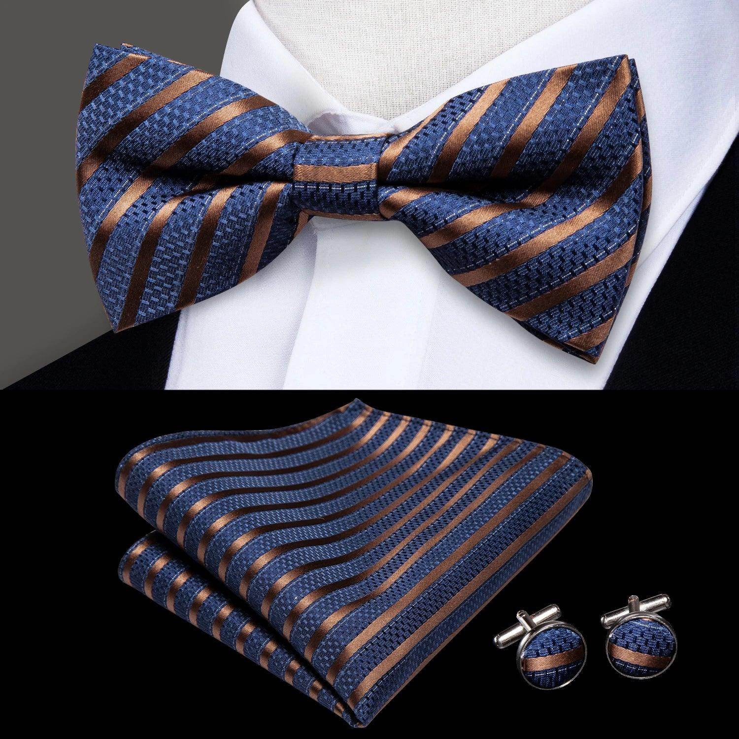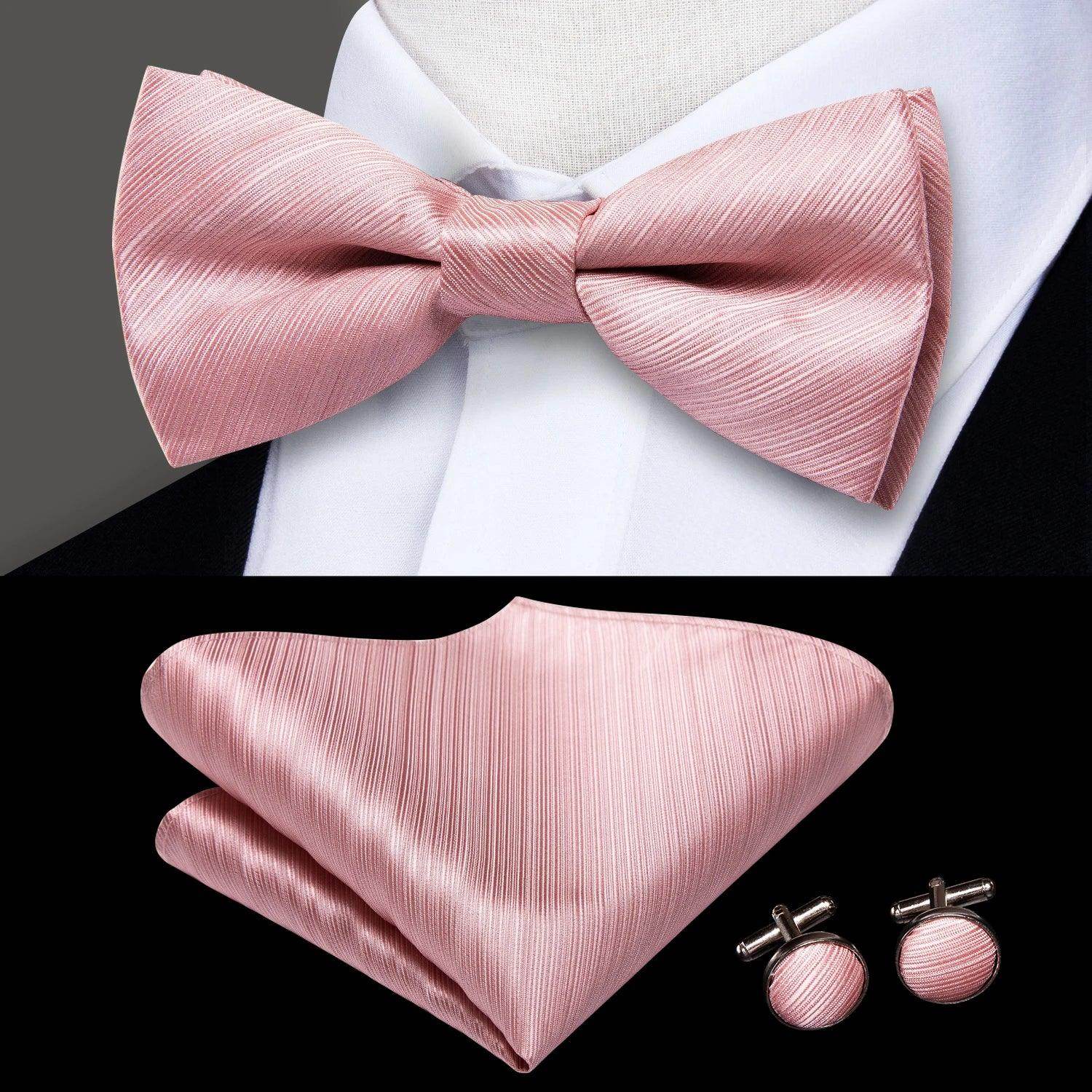 Classic Bow Ties For Men Silk Butterfly Pre-Tied Bowtie Pocket Square Cufflink Sets