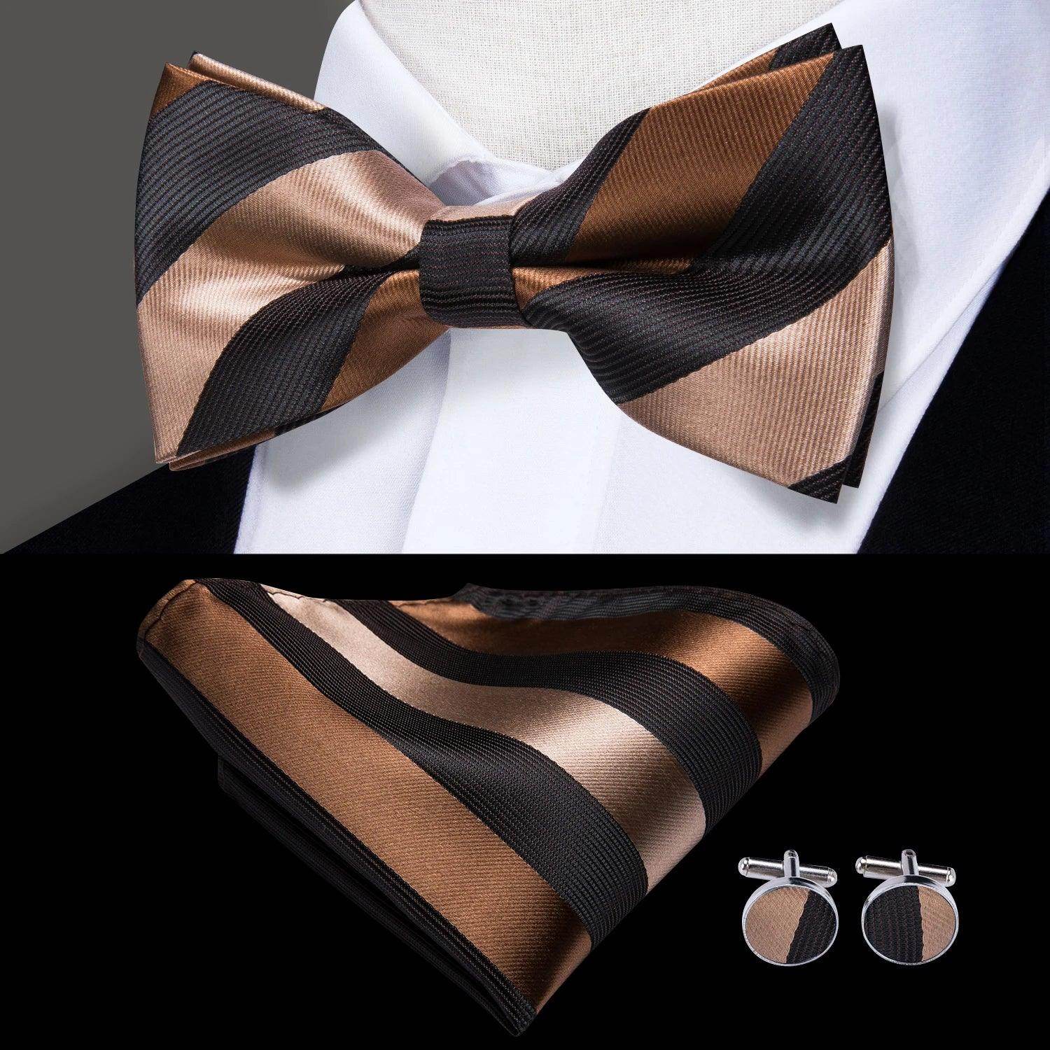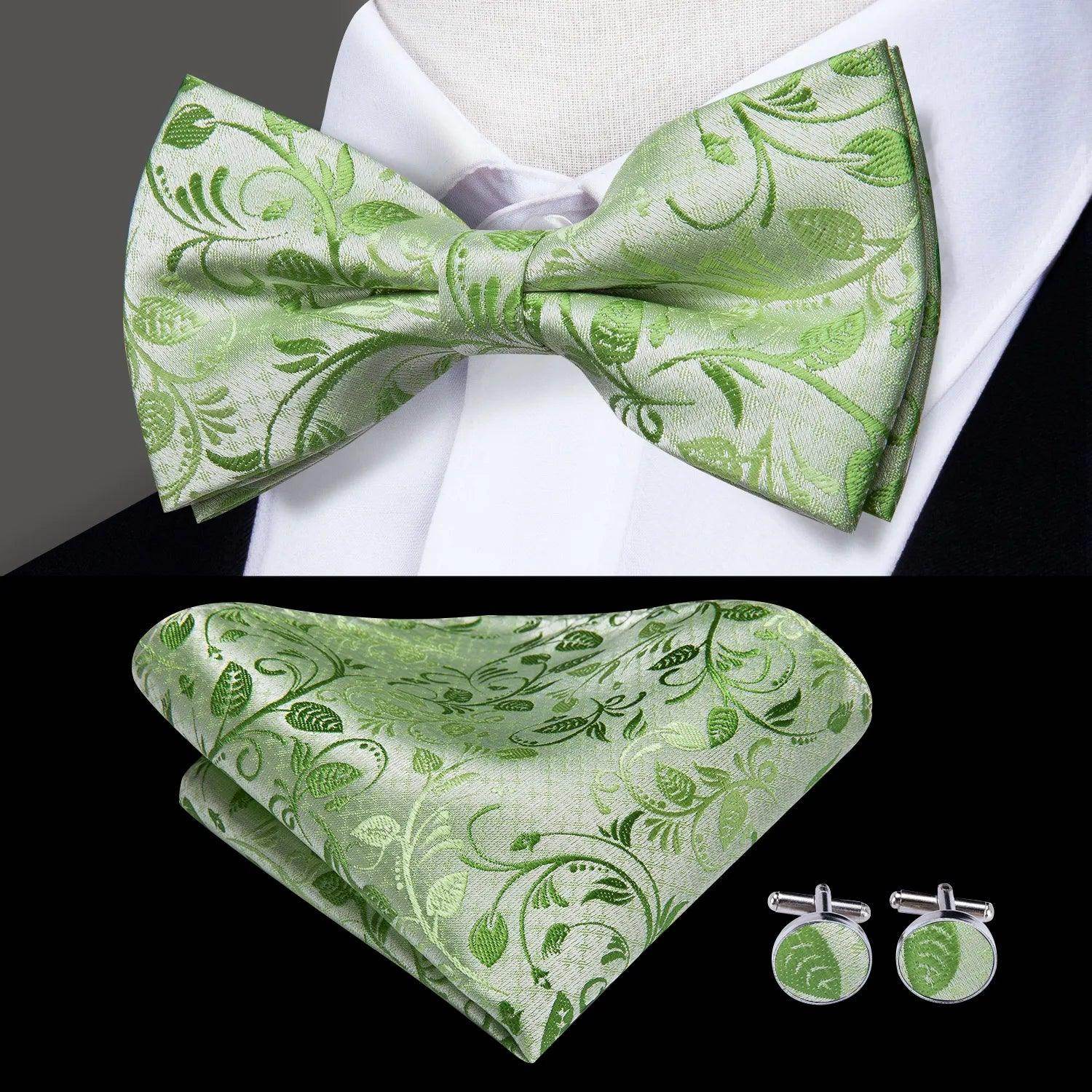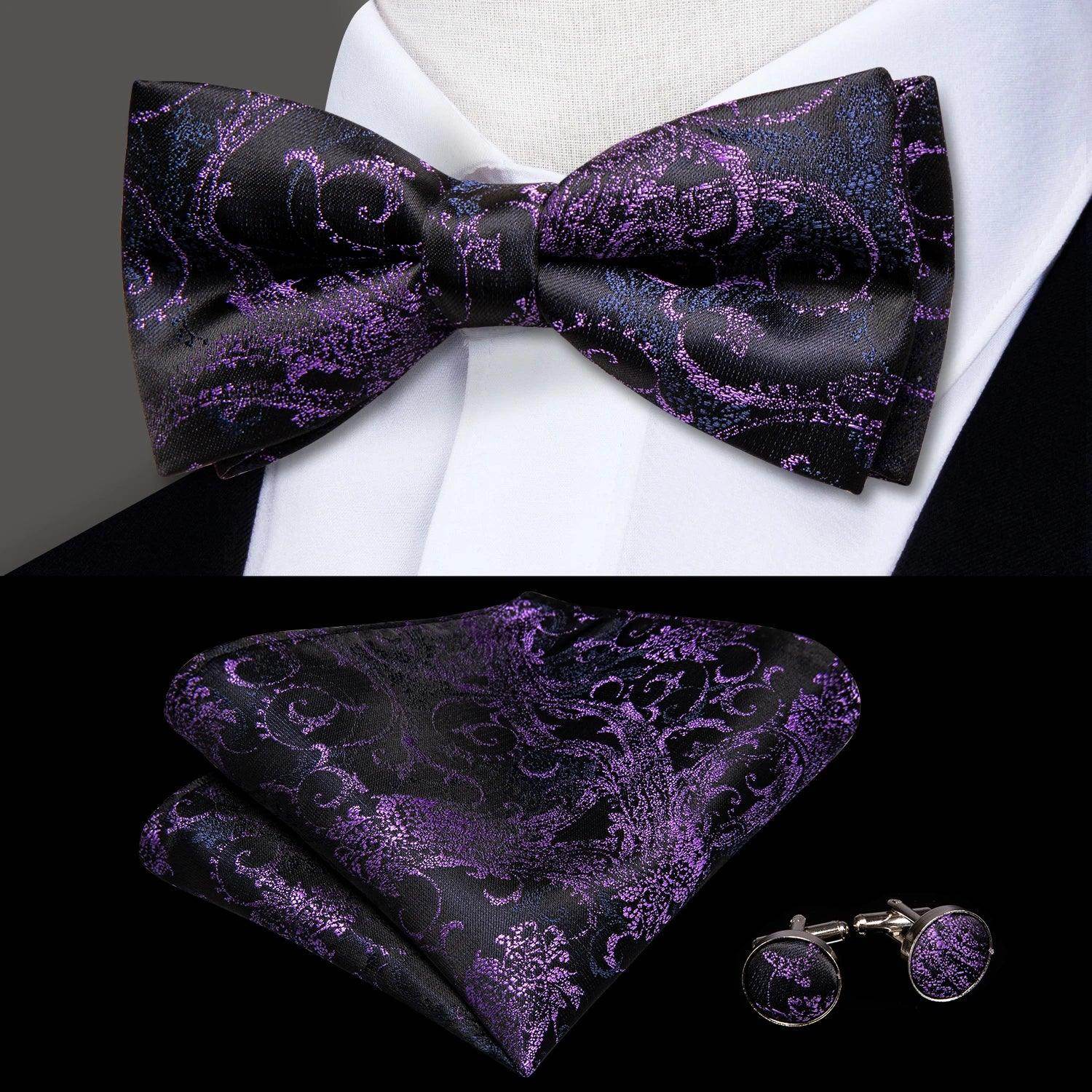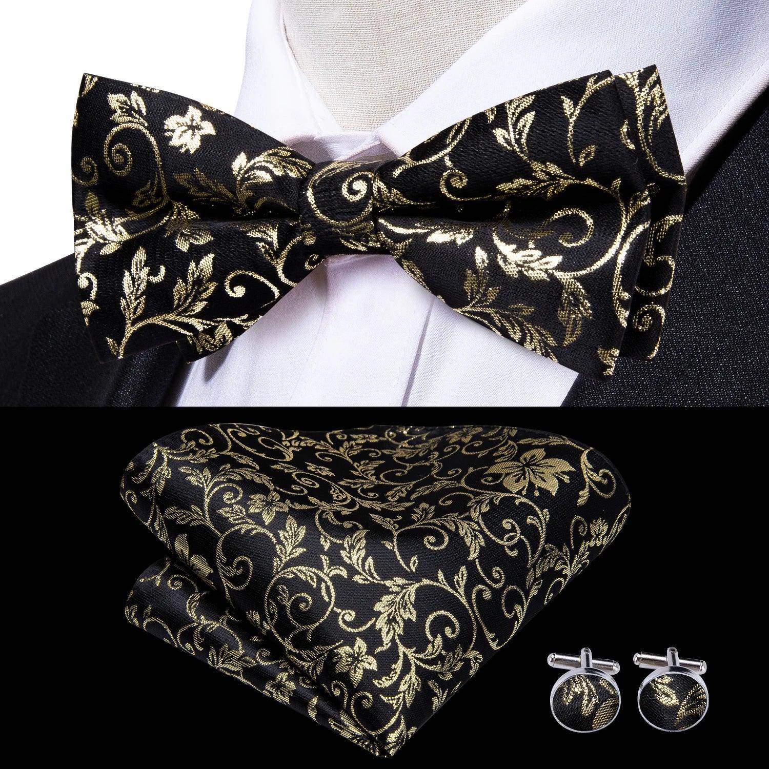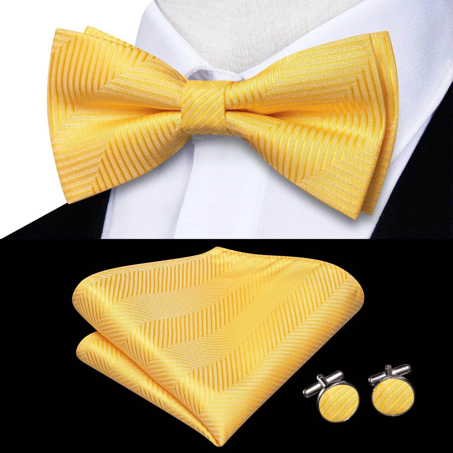 Classic Bow Ties For Men Silk Butterfly Pre-Tied Bowtie Pocket Square Cufflink Sets