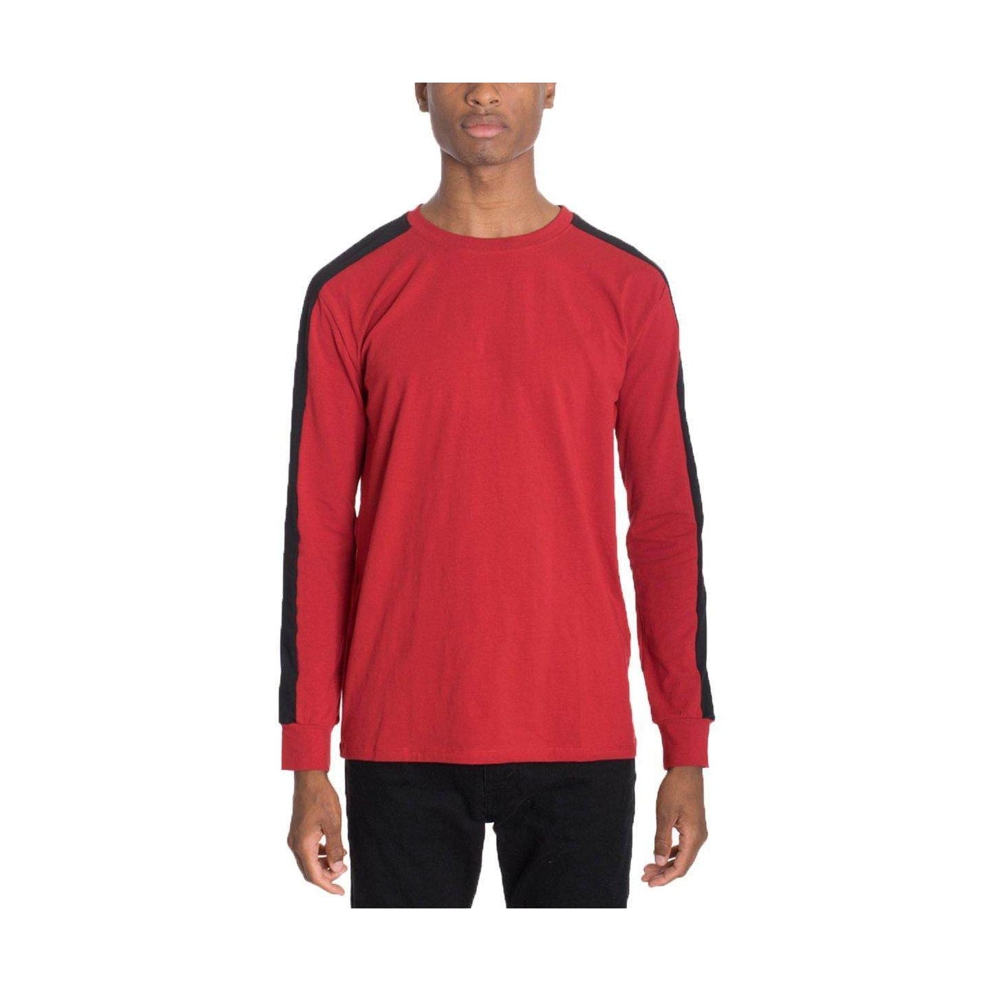 Crafted from high-quality materials, this side stripe pullover men will keep you comfortable throughout the day. The vibrant red color, accented with a bold black stripe, adds a pop of color to your outfit. Whether you're heading out for a casual day with friends or need something stylish for a night out, this shirt fits any occasion.