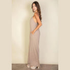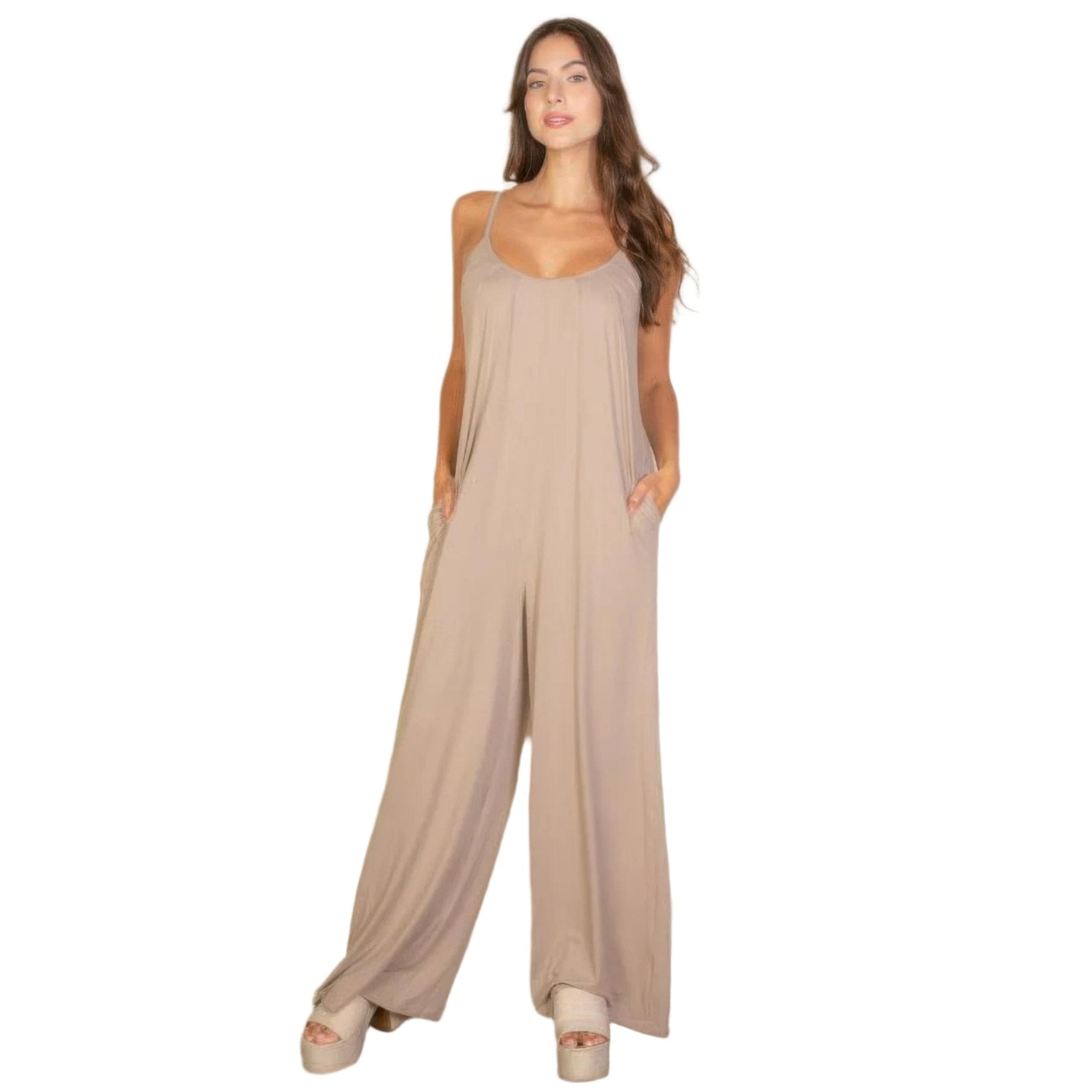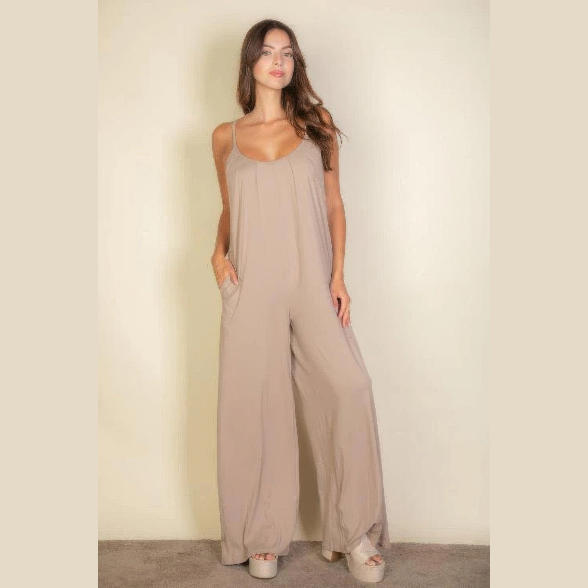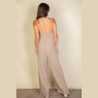 Spaghetti Strap Solid Wide Leg Jumpsuit Taupe