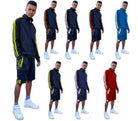 VacationGrabs Men's 2PC Two Stripe Track Jacket Shorts Set