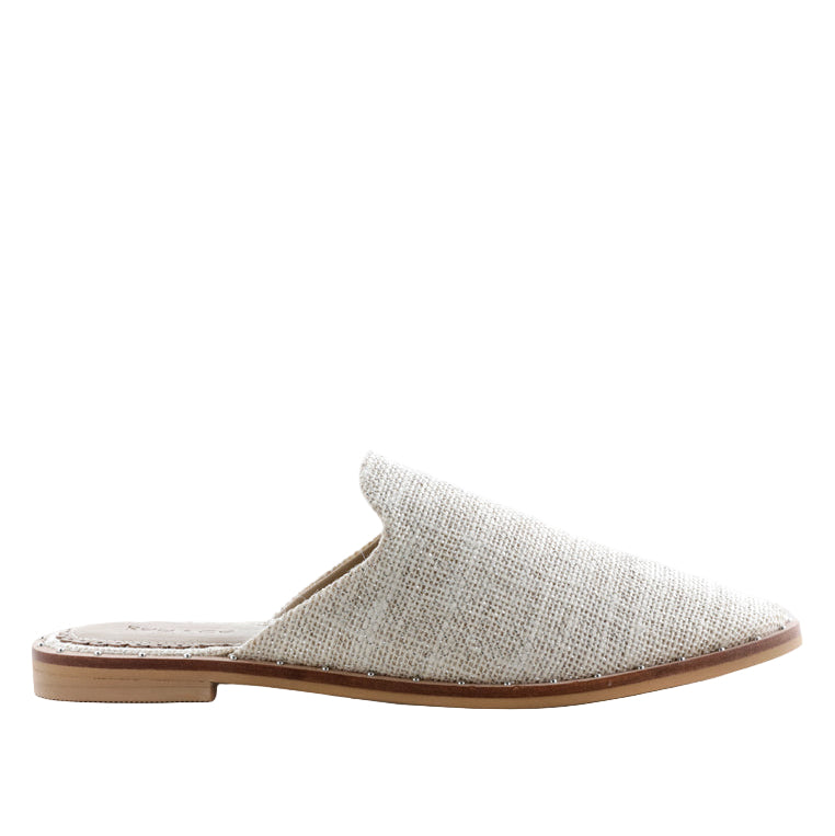Decorated with tiny studs along with the insole frame, this canvas mules in camel with glitter yarns woven in between is a certain aesthetic you would definitely love!??Sets well on the feet, and is for all-day wear.
