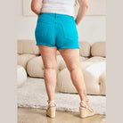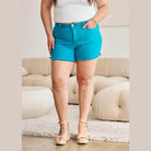 Learn more about our RFM Tummy Control High Waist Raw Hem Denim Shorts at VacationGrabs:
