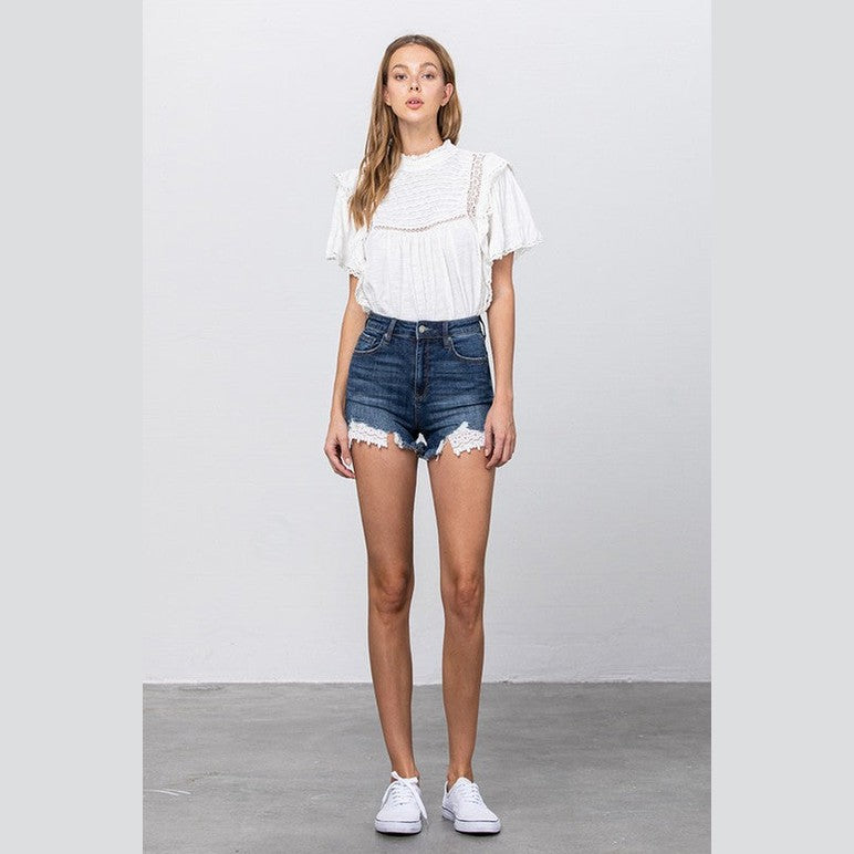 Step into effortless style with these high waist lace lining denim shorts from Insane Gene. Perfect for a day out or a casual evening, they offer a chic blend of comfort and elegance. Designed to flatter, these women's shorts are a staple for any vacation wardrobe.