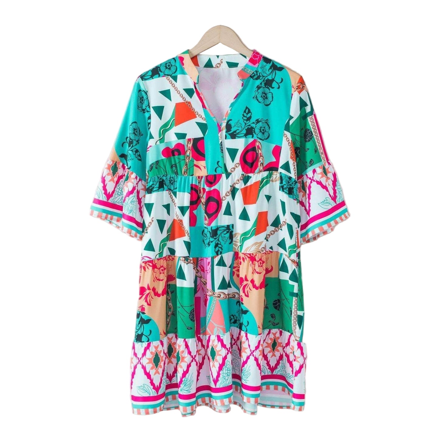 Learn more about our Printed Surplice Half Sleeve Mini Dress at VacationGrabs: