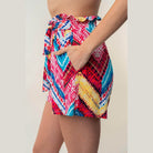 Revamp your summer wardrobe with these high-waisted print knit shorts, complete with an adjustable waist-tie for a personalized and comfortable fit. Designed with side pockets for added functionality and a true-to-size silhouette, these shorts offer both style and practicality. Crafted from lightweight slinky knit fabric, they provide a breezy and effortless feel perfect for everyday wear. Whether you're running errands or enjoying a casual day out, these versatile shorts are a must-have for the season. Elevate your look with these stylish and comfortable high-waisted print knit shorts for a fashionable and on-trend ensemble.