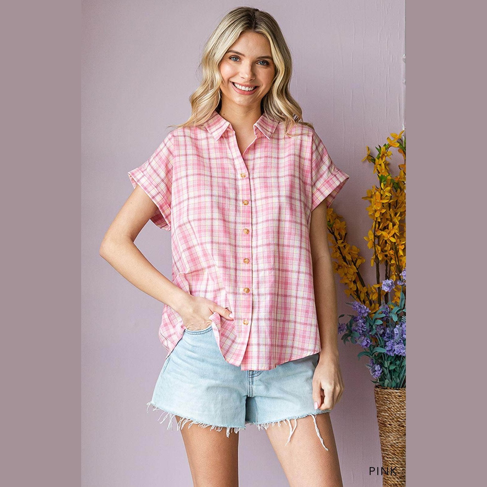 Learn more about our Cotton Bleu by Nu Lab Plaid Collared Neck Short Sleeve at VacationGrabs:
