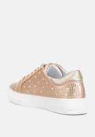 These party sneakers are the perfect choice for those looking to make a fashion statement while keeping comfort in mind. With their metallic faux leather, cushioned insoles, and stylish embellishments, they're a versatile addition to your wardrobe.