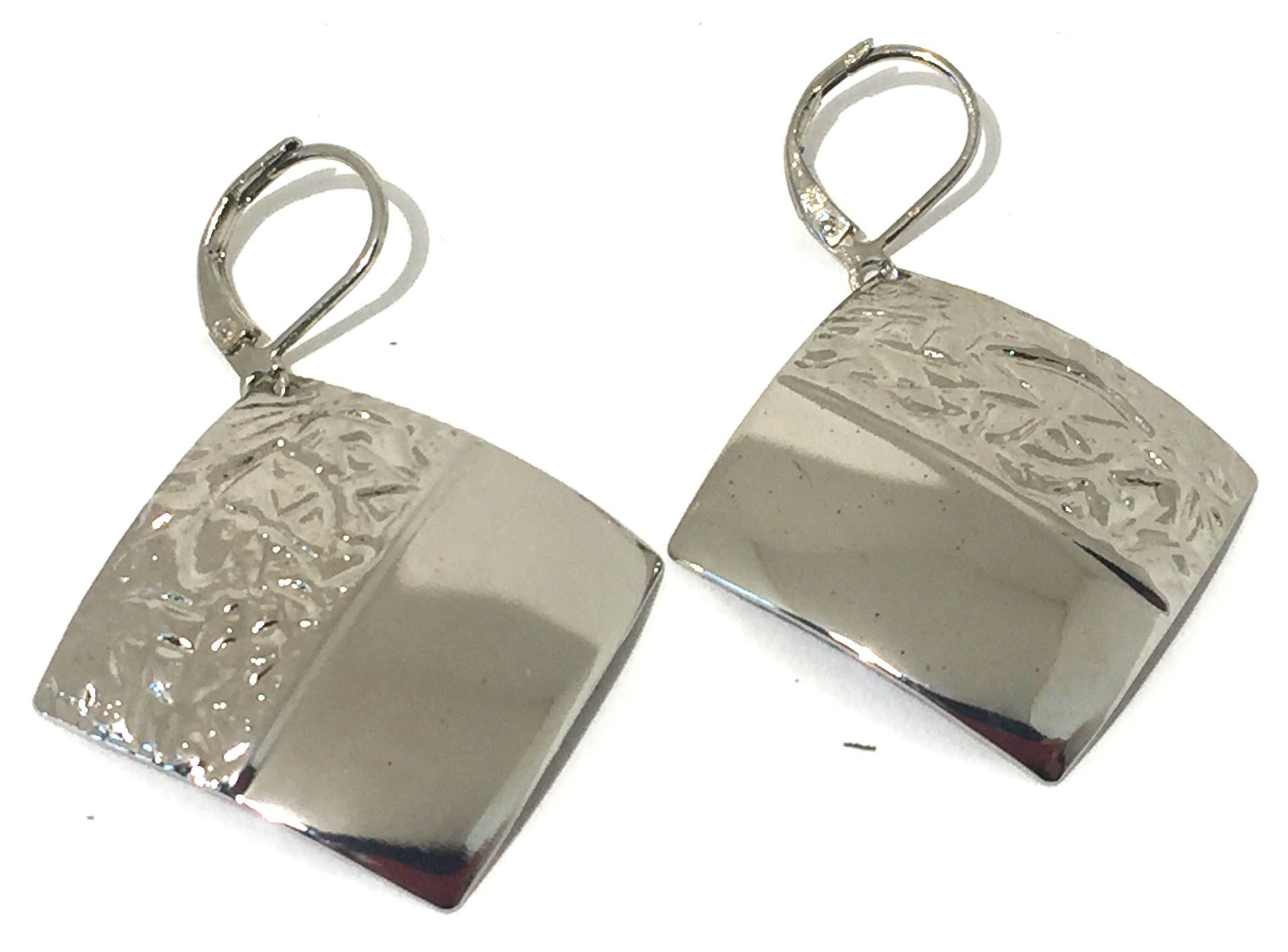 The silver dipped Tulum earrings feature a stamped design on half the shape and were inspired by the beauty of Tulum. The earrings are very light weight.