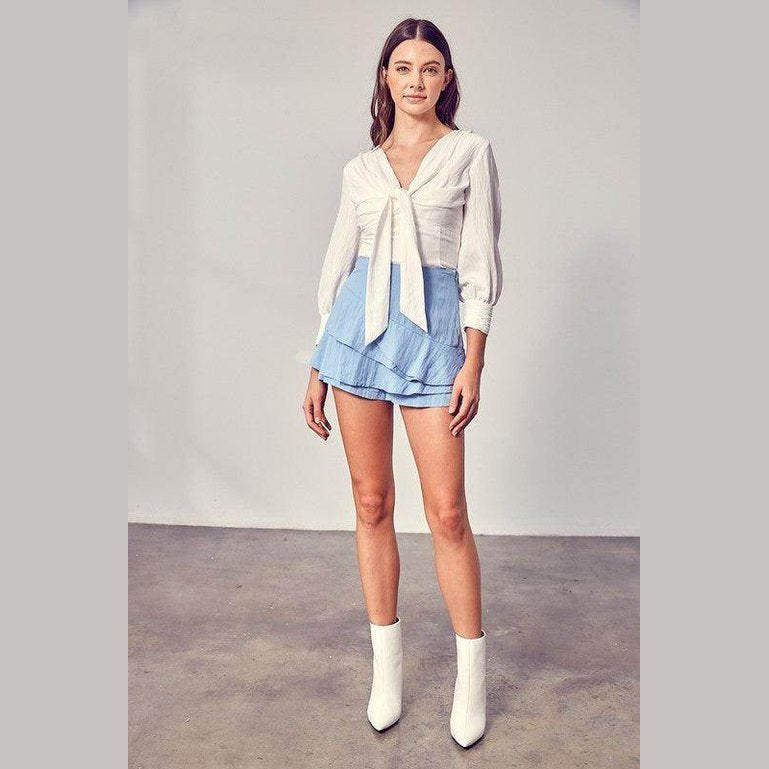 Discover effortless style with the Front Tie Long Sleeve Top from the Do + Be Collection, available at VacationGrabs. This stylish long sleeve shirt is designed to elevate your wardrobe with a perfect blend of comfort and elegance.