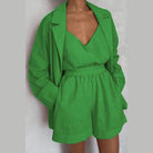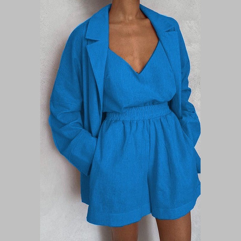 Step into your next getaway with the summer travel matching set from VacationGrabs. This three piece set by Miss Sparkling creates a look that works for any sunny trip. The summer travel matching set includes a flowy jacket, a relaxed-fit top, and high-waisted shorts. Each piece is crafted from lightweight, breathable fabric that feels soft against your skin.