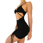 Turn heads with the Alluring spaghetti strap mini dress from VacationGrabs. This dress features a cross-body cut-out design. The spaghetti straps shape your shoulders and highlight your neckline. The backless style brings sultry appeal for any night club event. Stay cool with the sleeveless look that feels light on warm nights.