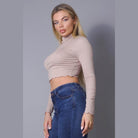 Add our "Long Sleeve Curl Edge Layer Top" in Taupe to your cart now and enjoy the perfect blend of chic style, textured details, and quality craftsmanship!
