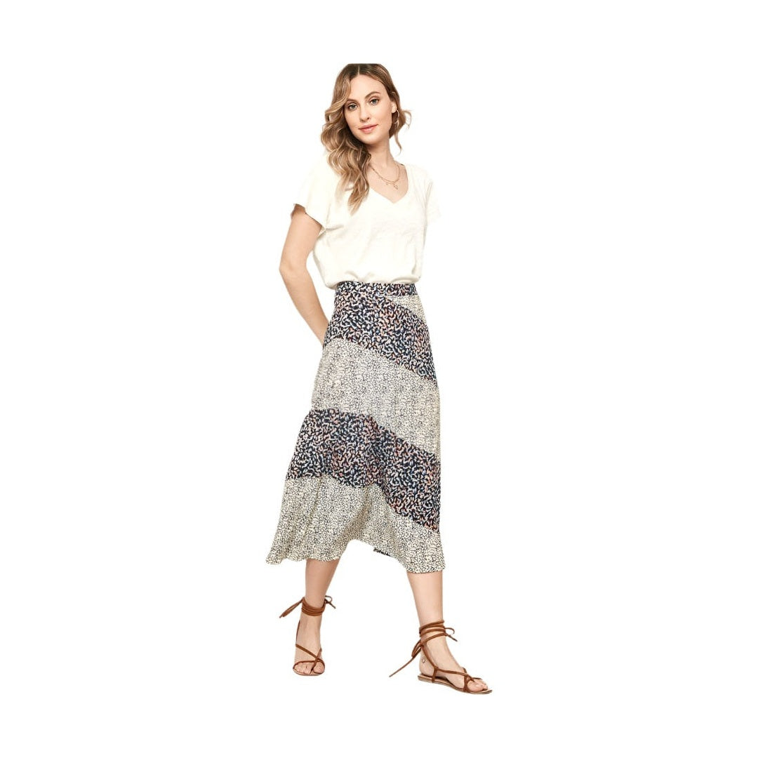 Step into easy style with this floral-print woven midi skirt from VacationGrabs. The design shows off a playful mix of petite floral patterns, arranged in panels across the flowy length. The high-rise waistband gives comfortable support. The midi length reaches below the knee for a breezy yet versatile look for travel.