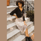 The simple A-line cut flatters most silhouettes. The skirt drapes smoothly with each step. Elastic in the waistband adds ease to your fit. There are no zippers or buttons to fuss with. This skirt pulls on in seconds. It’s easy to layer with sandals, flats, or sneakers.