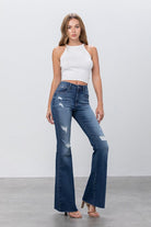 Upgrade your wardrobe with these stunning Mid Rise Dark Wash Flare Jeans from Insane Gene, exclusively at VacationGrabs. These dark wash jeans for women redefine versatility and elegance. Perfect for casual outings, these jeans combine style and comfort seamlessly.