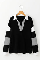 Black Striped Colorblock Patchwork Collar Sweatshirt