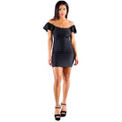 Introducing our Convertible Off-Shoulder Ruffle Sleeve Bodycon Mini Dress, a stylish and versatile piece made with care in the U.S.A. Available in sizes Small (S), Medium (M), and Large (L), this dress is designed to enhance your silhouette and make a statement. The convertible off-shoulder design and ruffle sleeves add a touch of sophistication to the classic bodycon silhouette. Crafted from a high-quality blend of 82% Nylon and 18% Spandex, this dress offers both comfort and a flattering fit. Elevate your wardrobe with this timeless Black mini dress.